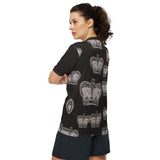 Introducing our revolutionary sports jersey crafted with recycled materials for a sustainable future. Designed with breathability and moisture-wicking properties, it ensures you stay cool and dry during intense workouts or when you wear it for the day. The two-way stretch fabric provides flexibility and freedom of movement, while the double-layered v-neck collar adds a touch of style. With a trendy and unique vibrant print, this jersey not only looks great but also feels comfortable, empowering you to achieve your best performance. Pair with any of I'm's matching apparel, athletic wear, swimwear, footwear, bags and accessories and take your fashion to the next level!