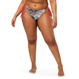 Sit back and relax this summer wearing our empowering recycled string bikini bottom, designed to boost your confidence and make you feel fabulous. With it's cheeky fit and versatile style, this bikini bottom is perfect for any beach or poolside occasion. Featuring a unique print and flexible bikini straps, this bottom allows you to express your individuality and create your own unique look. Made from soft stretchy fabric and double layered for extra comfort and durability, this bikini bottom offers a flattering and comfortable fit. Not only does it look great, but it also provides UPF 50+ protection, keeping your skin safe from harmful UV rays. With multiple ways to tie, you can customize the fit to suit your preference and style, embrace your confidence and make a statement with our empowering string bikini bottom. Pair with I'm's matching string bikini top, padded bikini top, 1 piece swimsuit, swim trunks, flip-flops or slides, beach bag and towel and slay at the beach or pool this summer. Also check out the rest of I'm's matching apparel, athleticwear, swimwear, footwear, bags, and accessories and allow us to empower you!
