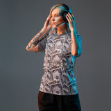Introducing our revolutionary sports jersey, crafted with recycled materials for a sustainable future. Designed with breathability and moisture-wicking properties, it ensures you stay cool and dry during intense workouts or when you wear it for the day. The two-way stretch fabric provides flexibility and freedom of movement, while the double-layered v-neck collar adds a touch of style. With a trendy and unique vibrant print, this jersey not only looks great but also feels comfortable, empowering you to achieve your best performance. Pair with any of I'm's matching apparel, athletic wear, swimwear, footwear, bags and accessories and take your fashion game to the next level.